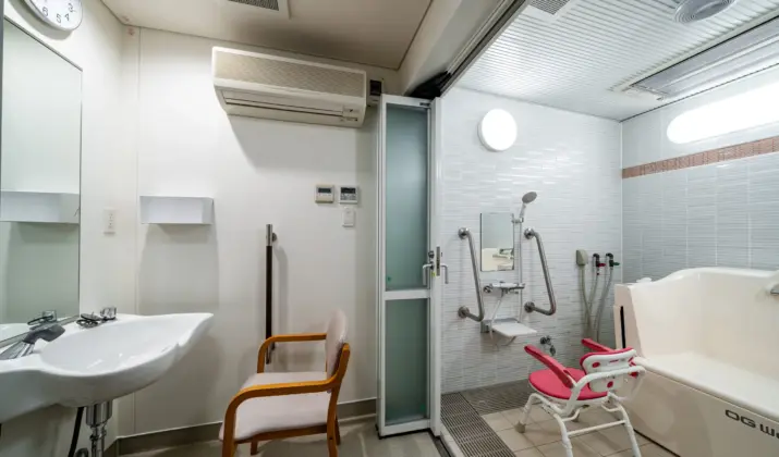 【個浴室】お身体の状態に合わせて、座位でも安心してご入浴いただけます