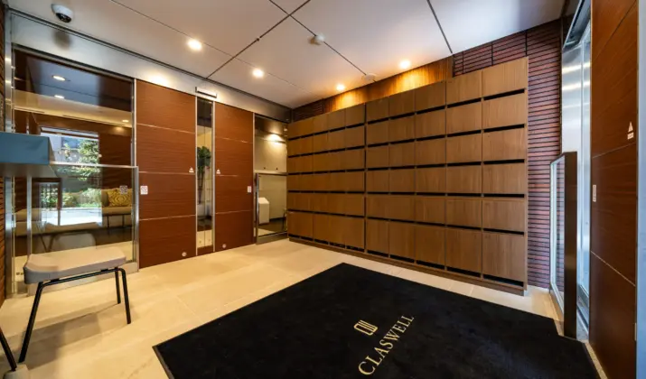 【エントランス】高級感のある木目が美しい空間、扉が広く車椅子での移動もスムーズです