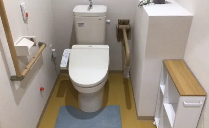 【トイレ】ウォシュレット付のトイレで、手すりやナースコールを備えています。