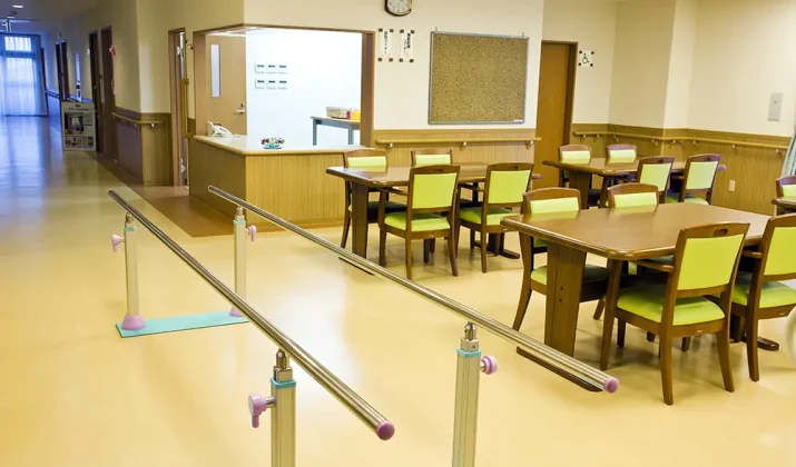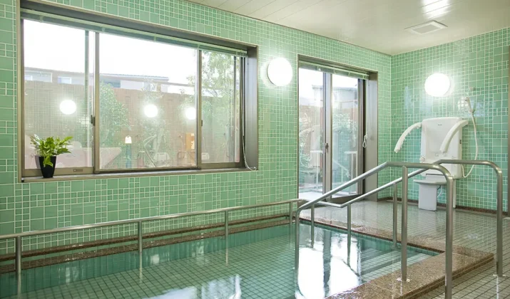 | 共用施設・設備 | オゾン消臭装置、浴室(一般浴槽・特殊浴槽・個別浴槽・露天風呂)、冷暖房、健康管理室、相談室、温水洗浄便座付トイレ、洗濯乾燥機、談話コーナー兼機能訓練コーナー、食堂、エントランス、ストレッチャー対応EV、スプリンクラー |