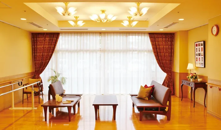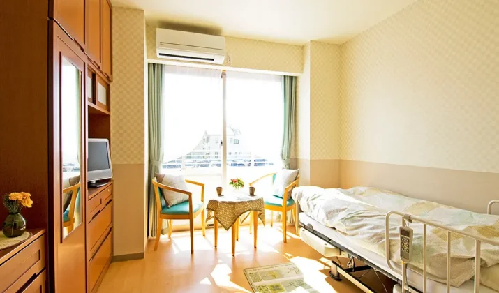 | 居室設備 | オゾン消臭装置 収納家具 冷暖房 天井照明 電動リクライニング式ベッド 温水洗浄便座付トイレ 洗面台 応接セット 木製キャビネット カーテン フットライト コールボタン スプリンクラー |