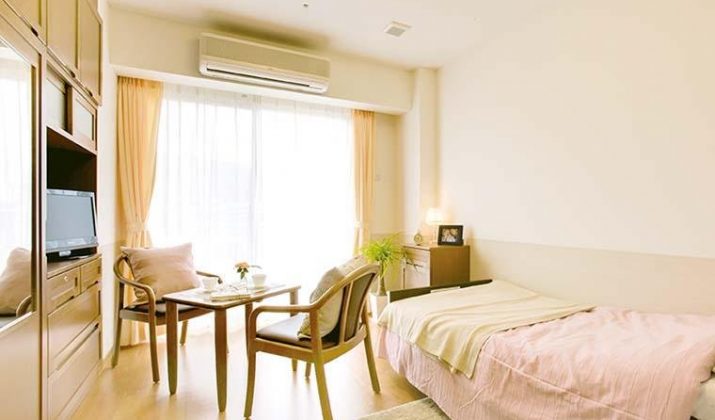 | 居室設備 | オゾン消臭装置 収納家具 冷暖房 天井照明 電動リクライニング式ベッド 温水洗浄便座付トイレ 洗面台 応接セット 木製キャビネット カーテン フットライト コールボタン スプリンクラー |