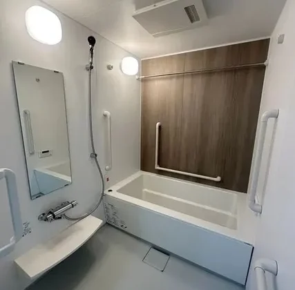 【居室Bタイプ:1人用】手すりや介護用品を完備し安全に配慮した浴室です。