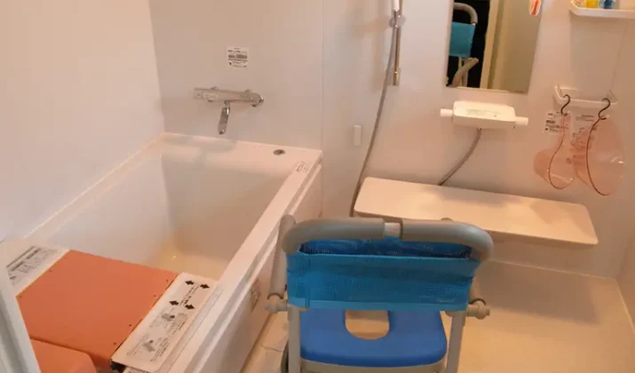 【電動リフト浴】浴槽での立ち座りや出入りをサポート、安全に入浴していただけます。