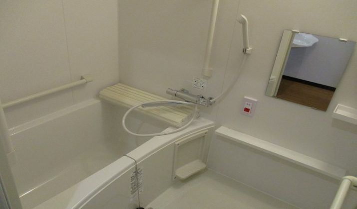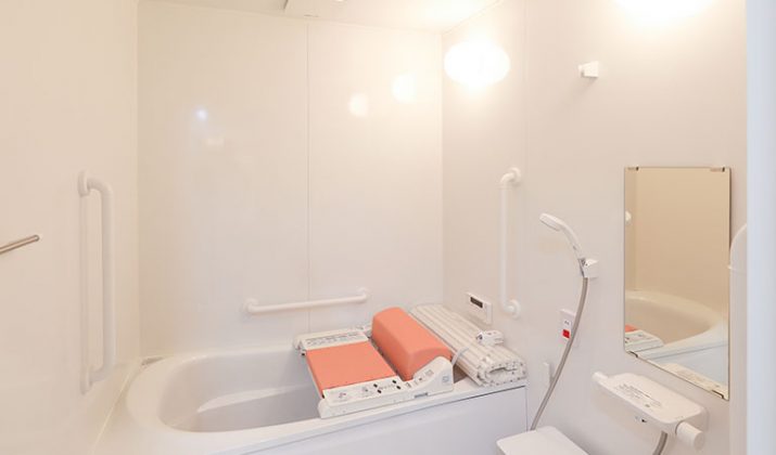 【リフト浴】跨ぐのが難しくても座位が安定している方は電動リフトで安全にご入浴いただけます。