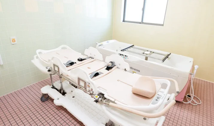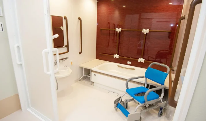 【寝台浴室】寝台浴室も完備。寝たままの姿勢でも快適にご入浴いただけます。