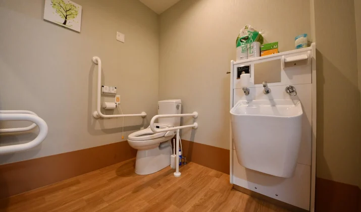 【多目的トイレ】車椅子の方も使いやすいゆったりとした配置です。
