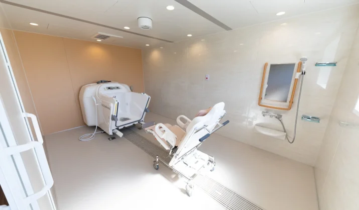 【機械浴】介護度の高い方も安全に入浴していただける機械浴も導入しています。
