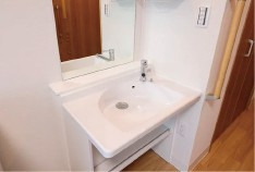 【洗面台】共用の洗面台は手すりがあり、体を支えながら安全に使用できます。