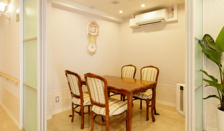 | 居室設備 | 介護用電動ベッド、エアコン、クローゼット、防炎カーテン、洗面台、トイレ(温水洗浄便座)、ナースコール(居室、トイレ) |