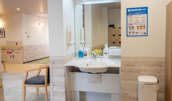 【手洗いスペース】玄関付近に洗面台をご用意、感染症対策を徹底しています。