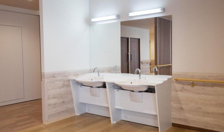 【食堂横洗面台】お食事前やお食事中にすぐに手を洗えるので便利です。