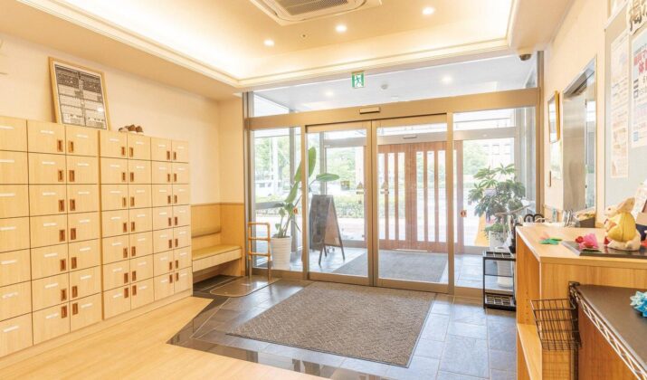 【エントランス】ご家族様とコミュニケーションを取り、一体的なケアの提供に取り組んでいます。