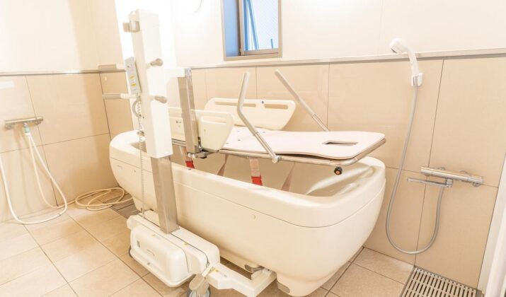 【ストレッチャー浴】寝たままの状態で髪や身体を洗ったり、湯船にもつかれます。