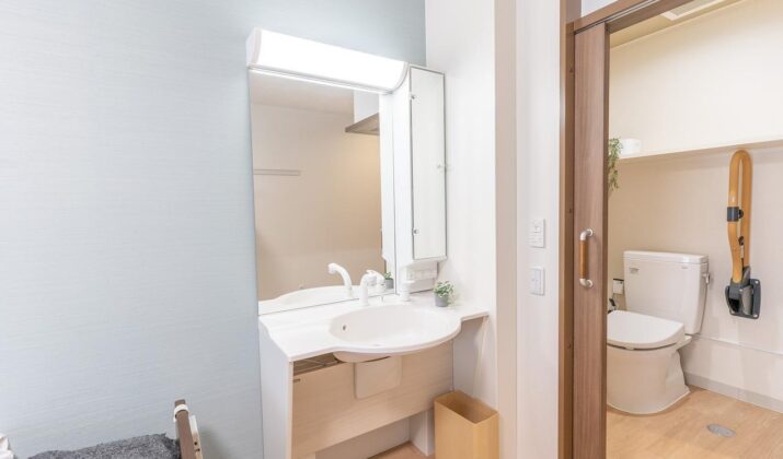 【居室洗面台】大きな鏡付でプライベート空間で身支度を整えていただけます。