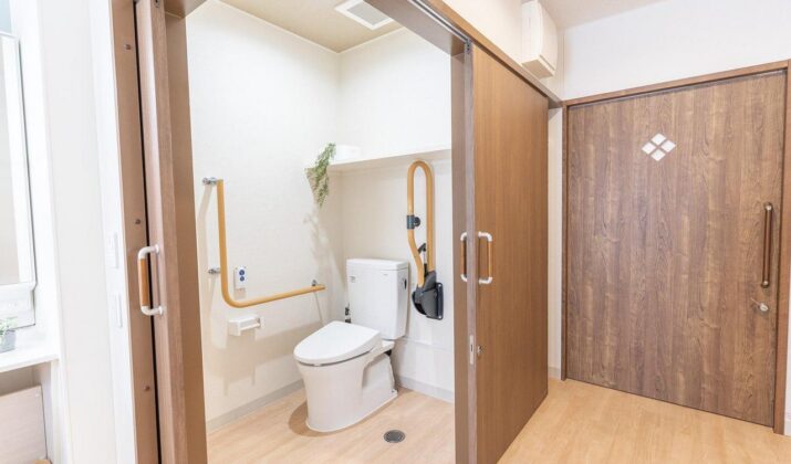 【居室トイレ】歩行器や車いすでも入れる広さがあり、手すりやケアコールを完備。