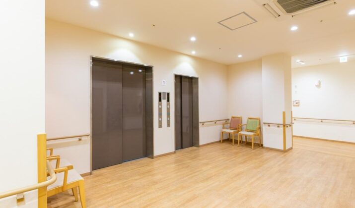 【エレベーターホール】車いすでも使いやすい設計で、2台あることで待ち時間を短縮します。