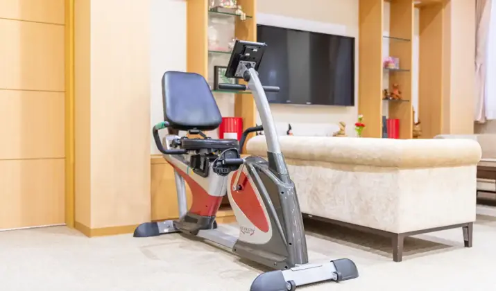 【ロビー】機能訓練用のトレーニングバイクを設置しています。