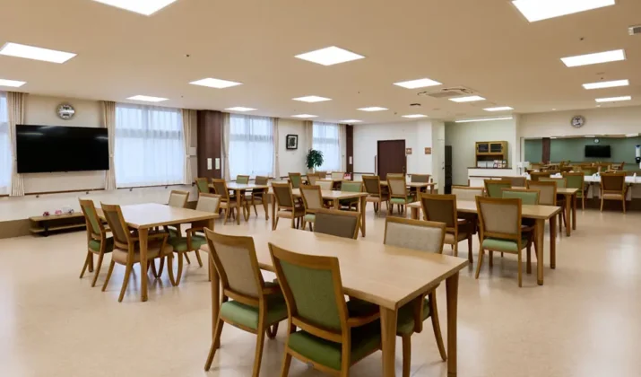 【食堂兼機能訓練室】食事やレクリエーションもお楽しみいただく集いの場です。