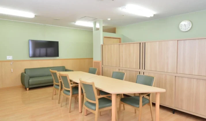 【談話コーナー】テレビやソファもあるくつろげる、交流の場です。