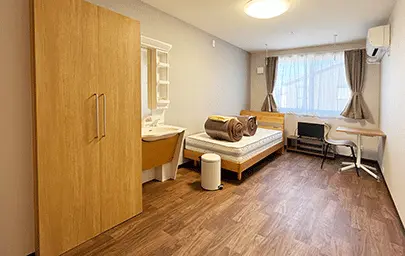 | 居室設備 | 洗面化粧台、エアコン、クローゼット、ナースコール、Wifi、カーテンなど |