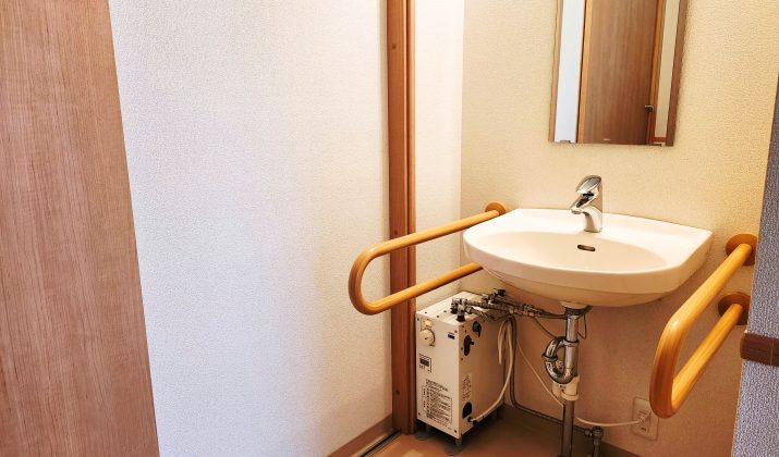 【居室】各部屋にナースコール、エアコン・洗面化粧台・トイレがあり車椅子の方でもお住まいし易いように、バリアフリー設計になっております。