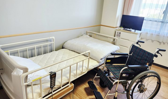 ・居室には、ナースコールを完備し緊急時も安心です。テレビ・チェスト・寝具をご準備しておりますので退院後でもご負担なくご入居いただけます。