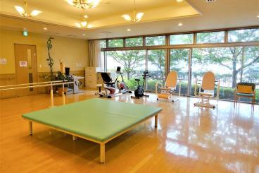 【機能訓練コーナー】一階エントランスの奥にある機能訓練コーナーには、機能訓練機器がそろっています。