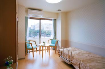 | 居室設備 | オゾン消臭装置 収納家具 冷暖房 天井照明 電動リクライニング式ベッド 温水洗浄便座付トイレ 洗面台 応接セット 木製キャビネット カーテン フットライト コールボタン スプリンクラー |