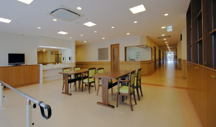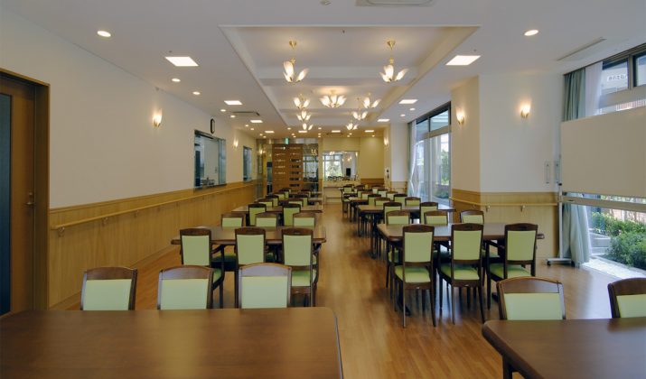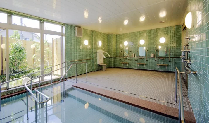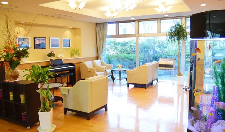 | 共用施設・設備 | オゾン消臭装置、浴室(一般浴槽・特殊浴槽・個別浴槽)、冷暖房、健康管理室、相談室、温水洗浄便座付トイレ、洗濯乾燥機、談話コーナー兼機能訓練コーナー、食堂、エントランス、ストレッチャー対応EV、スプリンクラー |