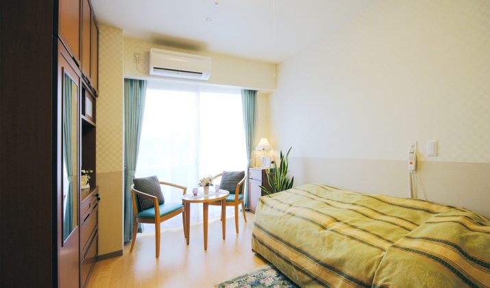 | 居室設備 | オゾン消臭装置、収納家具、冷暖房、天井照明、電動リクライニング式ベッド、温水洗浄便座付トイレ、洗面台、カーテン、フットライト、コールボタン、スプリンクラー |