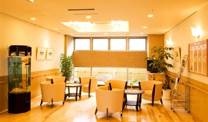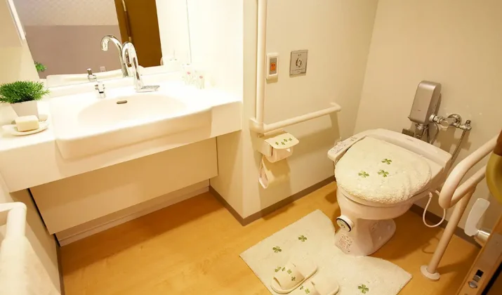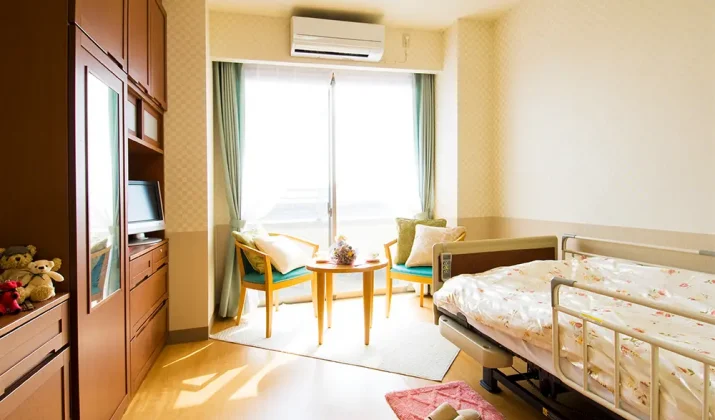 | 居室設備 | ●オゾン消臭装置 ●収納家具 ●冷暖房 ●天井照明 ●電動リクライニング式ベッド ●温水洗浄便座付トイレ ●洗面台 ●応接セット ●木製キャビネット ●カーテン ●フットライト ●コールボタン ●スプリンクラー |