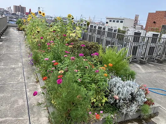 ・屋上には園芸コーナーをご用意、取れたての野菜や果物は新鮮でとてもおいしいです。