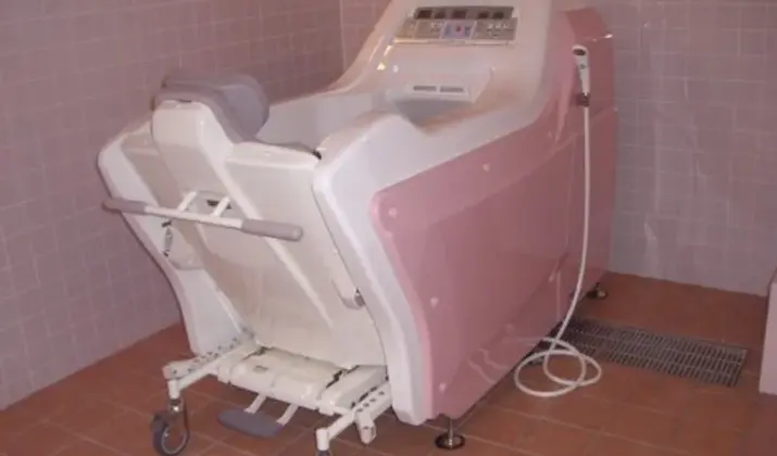 【特殊浴槽】最新の介護浴槽をご用意、座ったままの姿勢でご入浴していただけます。