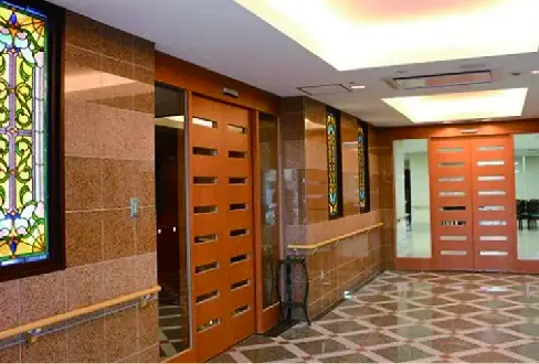 ・高級感のある内装が自慢の老人ホームです。エントランスには美しいステンドグラスが飾ってあり、差し込む光がきれいです。廊下はフロアごとに木目調や床の色が異なり、様々な表情を楽しんでいただけます。