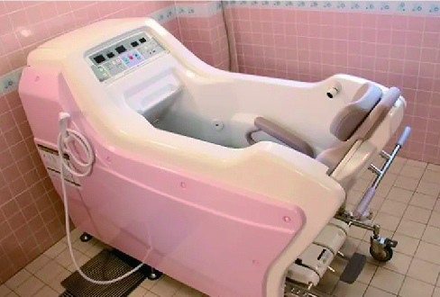 【特殊浴槽】最新の介護浴槽を完備、座ったままの姿勢でご入浴いただけます。