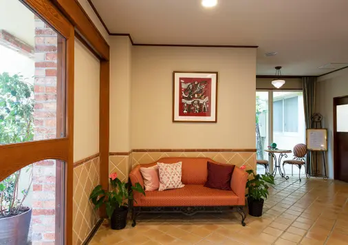【談話スペース】明るく居心地のよい空間でご歓談やくつろぎのひと時をお過ごしいただけます。