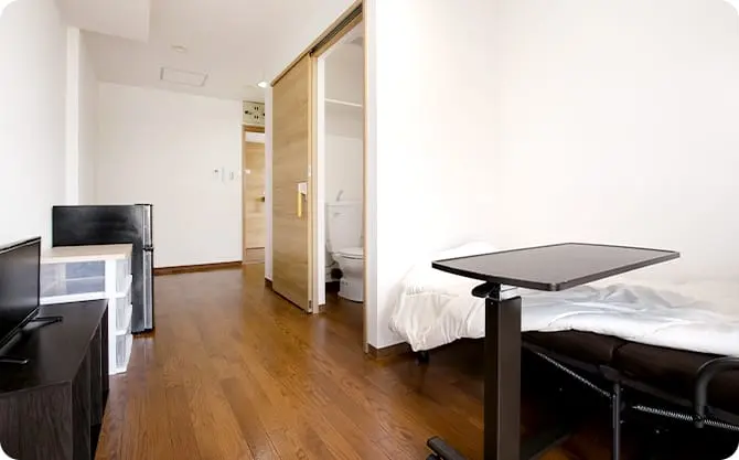 居室設備 | テレビ、トイレ、エアコン、ナースコール、フローリング、冷蔵庫、避難設備、防火カーテン、防災設備 |