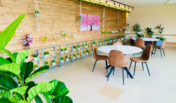 【ディサービス】併設のデイサービスルーム。カフェのような雰囲気でお楽しみいただけます。