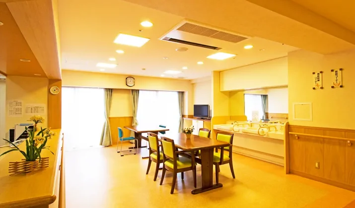 | 共用施設・設備 | オゾン消臭装置、浴室(一般浴槽・特殊浴槽・個別浴槽)、冷暖房、健康管理室、相談室、温水洗浄便座付トイレ、洗濯乾燥機、談話コーナー兼機能訓練コーナー、食堂、エントランス、ストレッチャー対応EV、スプリンクラー |