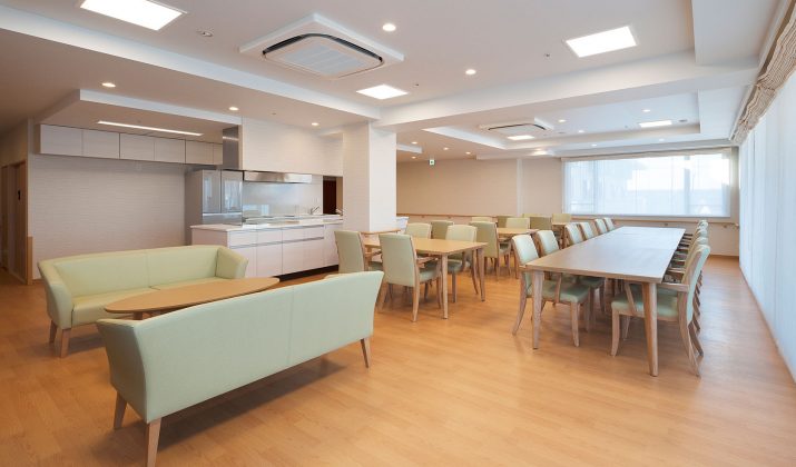 【共用スペース】1階の共有スペースは、機能訓練など軽い運動も行え、地域交流スペースとして皆様の交流の場にもなっています。