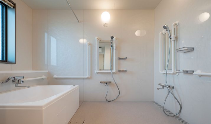 【機械浴室】最新式の設備を導入、車いすのまま入浴していただけます。