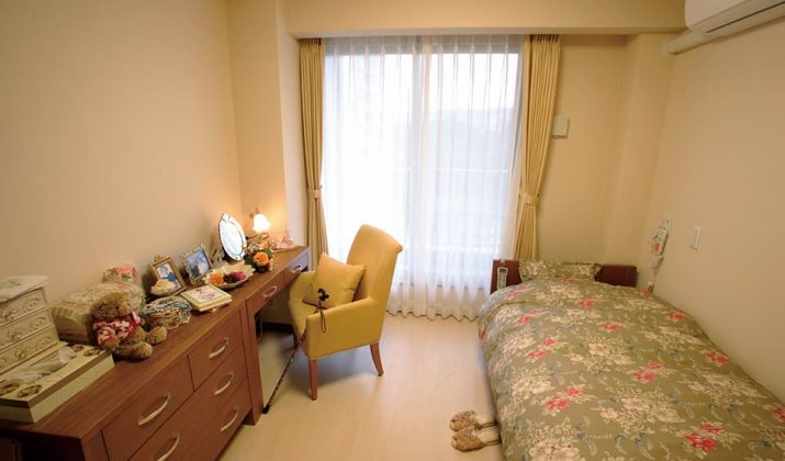 【居室】プライバシーと個性を尊重した個室です。備え付けのベッドや家具、暮らしやすさと心地よさにこだわりました。