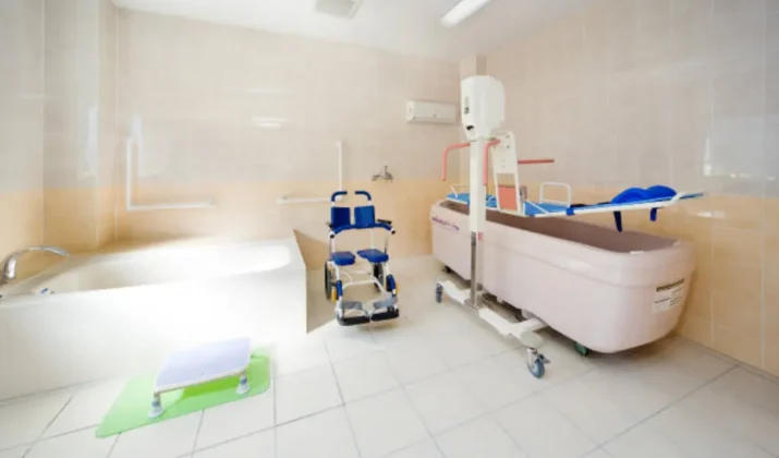 【浴室】明るく広い浴室で心地よく疲れを落とせます。また、介護度の高い方にも安心の設備。