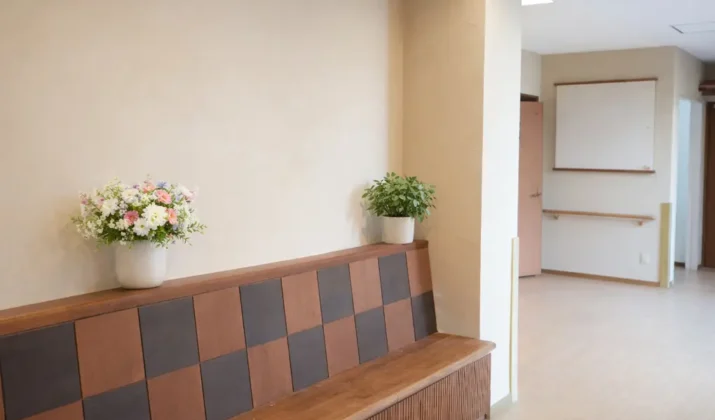 【廊下】談笑や休憩などにご活用いただける長いベンチを設置しています。