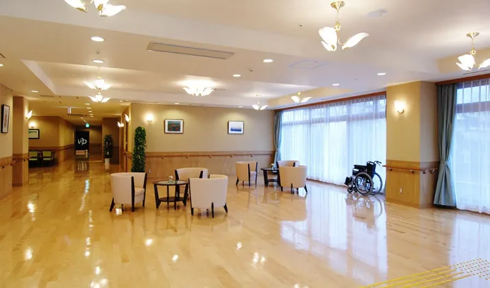 | 居室設備 | オゾン消臭装置、収納家具、冷暖房、天井照明、電動リクライニング式ベッド、温水洗浄便座付トイレ、洗面台、応接セット、木製キャビネット、カーテン、フットライト、コールボタン、スプリンクラー |
