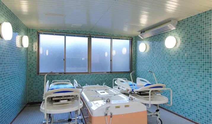 | 共用施設・設備 | オゾン消臭装置、浴室(一般浴槽・特殊浴槽・個別浴槽)、冷暖房、健康管理室、相談室、温水洗浄便座付トイレ、洗濯乾燥機、談話コーナー兼機能訓練コーナー、食堂、エントランス、ストレッチャー対応EV、スプリンクラー |
