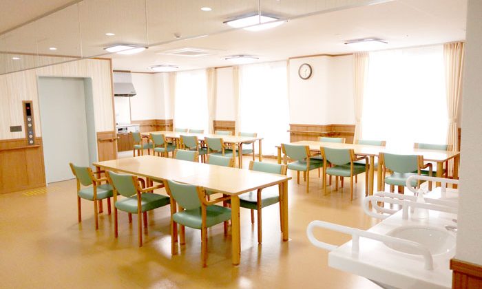 【食堂】明るく開放的な空間で、入居者様の集いの場です。