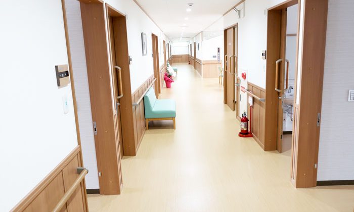 【廊下】施設内はバリアフリーで、車イスの方もスムーズな移動が可能です。
