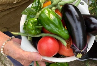 【収穫】菜園で収穫された、瑞々しい夏野菜です。